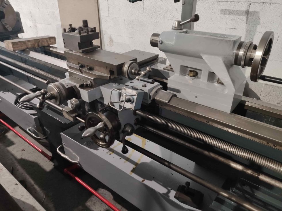 Torno Jashone M215E de 2000 entre puntos de ocasión. Diametro sobre bancada 430mm.Diametro sobre carro transversal 230mm.Diametro sobre escote 620mm. Caña104mm. Equipado con plato universal y torreta de cambio rápido.