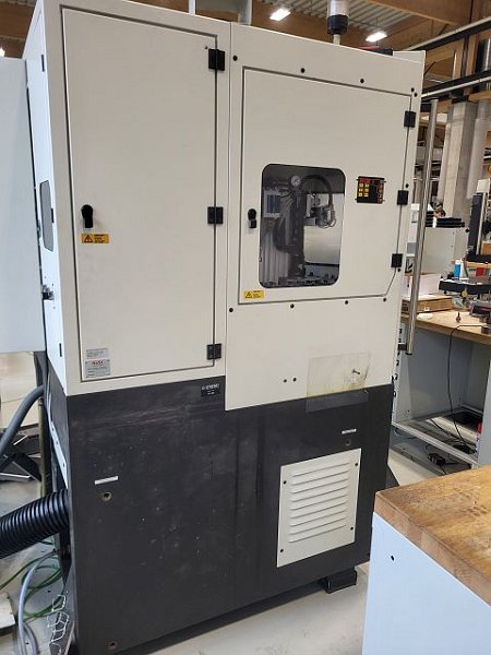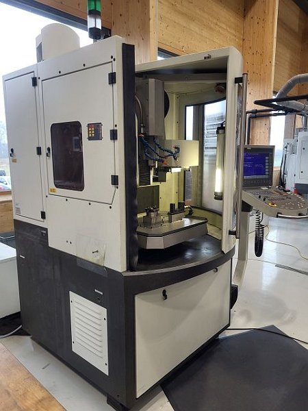 | Detalles | CONTROLS Control CNC HEIDENHAIN ITNC 530 ZONA DE TRABAJO -CÚBICA- número de ejes de procesamiento (sin ejes paralelos): 5 Trayecto de desplazamiento eje X: 270 mm Trayecto de desplazamiento eje Y: 250 mm Trayecto de desplazamiento Z: 250 mm HUSILLO / CABEZAL Gama de velocidades de: 10 /min Gama de velocidades a: 40000 /min Tomaherramientas: HSK A25 potencia del motor: 10 kW ALMACÉN DE HERRAMIENTAS Número de posiciones de la herramienta: 60 AUTOMATIC WORKLOAD EQUIPMENT Número de posiciones el almacenador: 24 DIMENSIONES / PESO espacio requerido -izquierdo/derecha-: 2300 mm espacio requerido -delante/atrás-: 2200 mm Altura total: 2200 mm Peso total aprox.: 2800 kg Operating hours: Spindle 12,324h Programme run 27,356 Accessories: -2-axis NC rotary table with EROWA -tool measurement Blum -measuring probe -tool magazine HSK25 -workpiece magazine for EORWA ITS50 tool holder 30 pieces -oil mist extraction -spindle alignment mandrel |