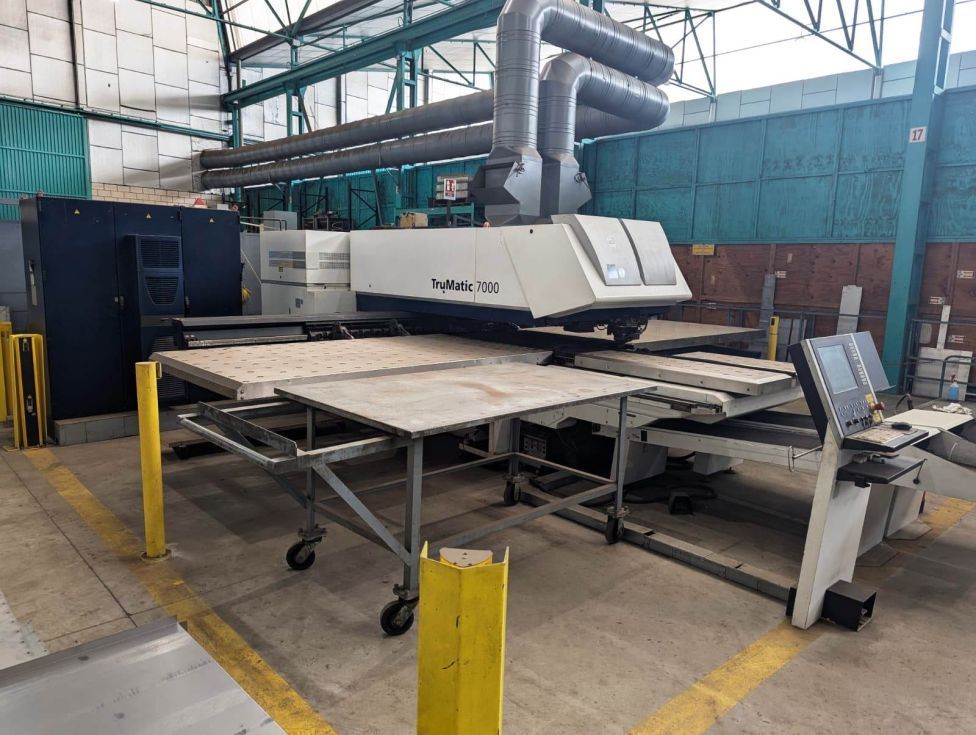 | Detalles | Instalación de punzonado y corte por láser combinada “TRUMPF” ● TruMatic 7000 (Formato grande) ● Año: 2010 ● Corte por láser, punzonar, conformar, colocar roscas, marcar o desbarbar ● Control Rexroth IndraMotion MTX, monitor TFT display 15”, 40 GB, USB ● Laser CO2 TruFlow 4000, 4000 W - Rayo TEMoo, Frecuencia 100 HZ-10 Khz ● Almacén lineal para 21 útiles y 4 garras de sujeción ● Rotación de todos los útiles 360° ●Mesas de bolas ● Equipo de aspiración • Contenedores de piezas buenas y contenedor de virutas ● Fuerza de punzonado: 220 KN / 22 Tn ● Espesor max. en acero: 8 mm • Peso max.pieza: 230 kgs ● Campo de trabajo combinado punz/láser: 3.120 x 1.570 mm • Velocidad Ejes X-Y: 100 m/min - 60 m/min Eje C punzonado: 330 RPM ● Tiempo de cambio de útiles. 2,8 seg / Multitool: 0,3 seg. ● Diámetro max. de todos los útiles; 76,2 mm / Max. Altura de conformado: 25 mm ● Capacidad de espesor láser: Acero: 8 mm / Aleaciones de aluminio: 4 mm |