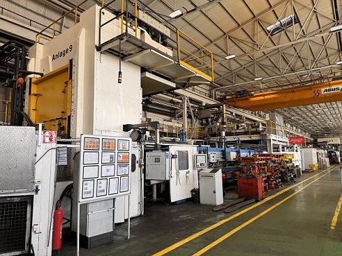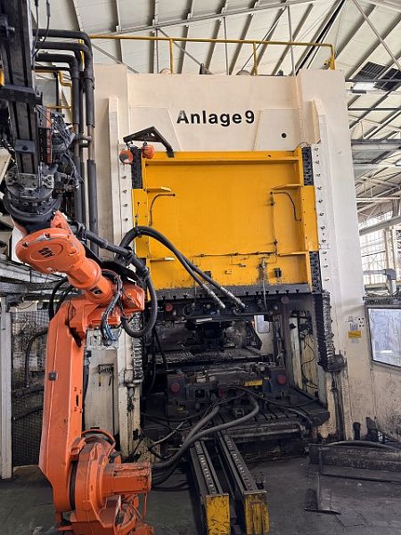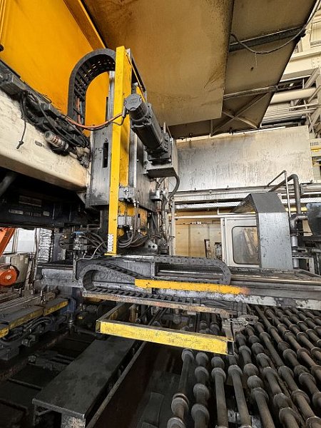 | Detalles | CONTROLS PLC SIEMENS S7 300 TIPO DE PRENSA Sistema de accionamiento: Hidráulico FUERZA Fuerza total: 800 to MESA INFERIOR Anchura de la superficie de sujeción: 2600 mm Profundidad de la superficie de sujeción: 2000 mm Altura de la mesa respecto del suelo: 540 mm CARRO Carrera: 900 mm CARRO Velocidad de aproximación: 460 mm/s Velocidad de trabajo mín.: 25 mm/s Velocidad de trabajo máx.: 44 mm/s Velocidad de retroceso máx.: 460 mm/s DIMENSIONES DE TRABAJO Altura de cierre (carrera máx. y regulación arriba): 1700 mm DATOS DE CONEXIÓN ELÉCTRICOS Consumo de energía eléctrica (total): 180 kW DIMENSIONES / PESO Peso total aprox.: 95000 kg ACCESORIOS/ANEXOS (PRENSAS) Automatismo de prensa: Sí Sistema transfer: Sí acc. to actual accident protection regulation: Sí Certificado CE: Sí Complete hot forming line consisting of: * Hydraulic press NEFF 800 to. * Ruhstrat furnace system: - Natural gas heating - Temperature 930°C - max. lining width: 1850 mm - Furnace length: 10800 mm * Strothmann Feeder * ABB unloading and loading robot |
