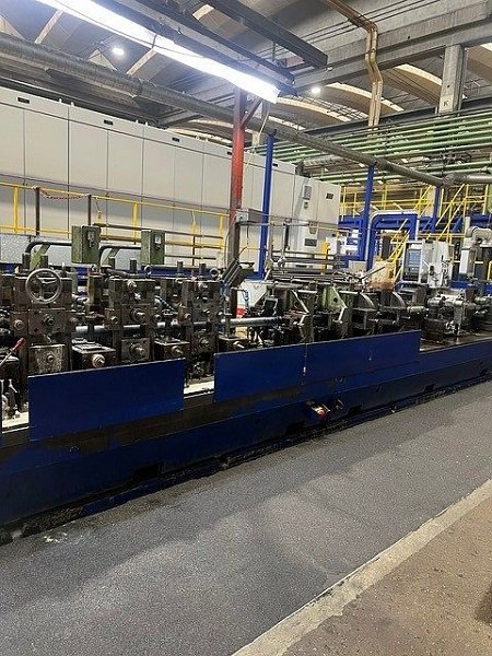 | Detalles | PRODUCT (PROFILE, TUBE) external diameter min.: 25 mm external diameter max.: 76 mm wall thickness min.: 0.7 mm wall thickness max.: 3.25 mm LINE CHARACTERISTICS welding process: HF inductive sawing process: travelling Velocidad máx.: 100 m/min DATOS DE CONEXIÓN ELÉCTRICOS Potencia de conexión: 680 kVA Technical data & highlights: System length: approx. 130 m Staff requirements: 6 employees for operation Welding process: High-frequency welding up to 400 kHz Induction welding process: Power up to 250 kW Advantages: Robust and reliable design – suitable for continuous industrial operation Precise welding quality thanks to state-of-the-art high-frequency technology Ideal for manufacturing pipes in various dimensions -Pipe welding machine: Abbey Etna -Strip processing + saw VAi Seuthe -Rolling mill Carl Wetzel -Induction welding system: Rittal SK3215.100, built in 2015 - Forming: Pass 1 – 3 Ø62.00 - Knife passes: Pass 8 – 10 Ø62.00 - Calibration: Pass 16 – 26 Ø64.00 |