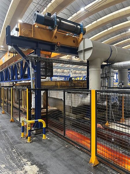 | Detalles | Plant for Drawing Oil Preparation in Tube Production The plant is designed for the optimal preparation of undrawn tubes prior to the subsequent drawing process. In this process, the tubes are evenly treated in drawing oil baths, ensuring homogeneous wetting of the surface. The drawing oil bath provides uniform lubrication, which reduces frictional resistance during the drawing operation, improves surface quality, and increases tool life. The system is designed to ensure a continuous material flow as well as constant bath temperature and quality. It therefore represents a key process step in tube manufacturing and significantly contributes to both the quality and cost-effectiveness of production. Technical Specifications of the Plant Automatic Bridge Crane Type: Matr. 2981 t.6,5 Max. translation speed: 40 m/min class: A6 (FEM 1.001 – ISO) Number of wheels: 4, Ø 315 mm Crane gauge: 13,000 mm Net crane weight: 8,000 kg Motor: Type FC90LFECCL-4, power 1.5 kW, protection degree IP55 Brake: Disc type, DC V400 Gearbox: Type TP 315/90BR, ratio 1/35 Power supply: 400 V – 50 Hz |