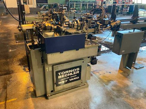 Torno monohusillo TORNOS MS7 con alimentador de barras Número de serie: 4623002 (verificado mediante placa) Características principales: - Equipado con combinación 13Y - Transportador integrado - Divisor - Alimentador de barras BARBOY Dimensiones de la máquina: aprox. 1500 × 900 × 1500 mm Dimensiones del alimentador de barras: aprox. 4500 × 600 × 1400 mm Peso: ~1800 kg Equipo incluido: - Combinación 13Y - Transportador - Divisor - Alimentador de barras BARBOY