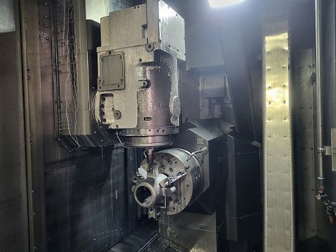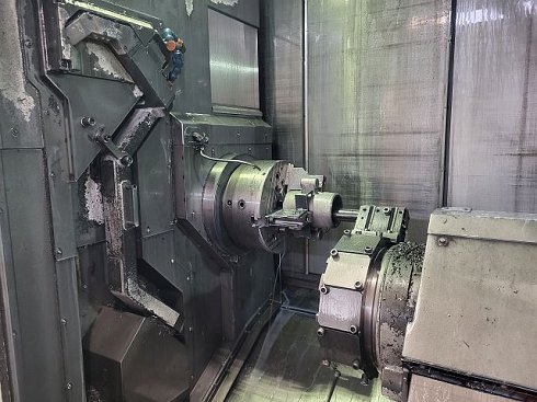 | Detalles | CONTROLS Control CNC OKUMA OSP P300S FUNCIONES BÁSICAS Número de cabezales: 2 Número de torretas: 1 live positions: Sí number of c-axes: 2 number of y-axes: 1 number of b-axes: 1 ZONA DE TRABAJO Diámetro de giro (máx.): 650 mm Diámetro de torneado (máx.): 650 mm Diámetro de la barra (máx.): 112 mm Longitud de la pieza máx.: 2100 mm MAIN SPINDLE Gama de velocidades de: 30 /min Gama de velocidades a: 3000 /min esfuerzo de torsión de husillo: 700 Nm Diámetro del husillo: 112 mm posicionamiento del cabezal: 0.001 ° Eje c: Sí COUNTER SPINDLE Gama de velocidades a: 3800 /min posicionamiento del cabezal: 0.001 ° Eje c: Sí X/Z SLIDE Trayecto de desplazamiento Z: 2100 mm Trayecto de desplazamiento eje X: 695 mm Trayecto de desplazamiento eje Y: 300 mm rango de rotación eje-B hasta: 240 ° Avance z a: 1000 mm/min Avance x a: 1000 mm/min Avance y a: 1000 mm/min Portaherramientas: Milling Spindle - rotation speeds (max): 12000 /min - drive power: 22 kW ALMACÉN DE HERRAMIENTAS Número de posiciones de la herramienta: 40 Longitud máxima de la herramienta: 400 mm Peso máximo de la herramienta: 10 kg X/Z SLIDE Trayecto de desplazamiento Z: 1584 mm Trayecto de desplazamiento eje X: 235 mm - contra cabezales: Sí DATOS DE CONEXIÓN ELÉCTRICOS Tensión de conexión: 400 V Frecuencia de la red: 50 Hz DIMENSIONES / PESO espacio requerido -izquierdo/derecha-: 6000 mm espacio requerido -delante/atrás-: 3050 mm Altura total: 3030 mm Peso total aprox.: 19000 kg -Big Bore left spindle: Spindle holder A11 (Din 55026) Chuck is a SMW KNCS-N 325-104 - Tool holder (top) Milling spindle (Capto C6) |