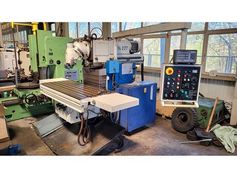 Superficie de la mesa: 630 x 1800 mm Movimiento longitudinal de la mesa: eje X - 1400 mm Movimiento transversal de la mesa: Y - 630 mm Movimiento vertical de la mesa: - Eje Z - 600 mm Cono del husillo: ISO 50 Velocidad del husillo: 35,5 - 2800 rpm Accionamiento del husillo - 15 kW Potencia total: 22 kVA Otras máquinas, dispositivos y herramientas no relacionados con el tema de venta visibles en las fotos no forman parte de la oferta.