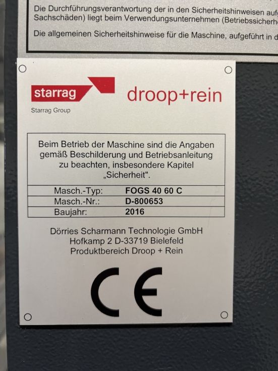 | Detalles | DROOP + REIN FOGS 40 60C High-Speed 5-Axis Machining Center Serial Number, Year of Manufacture, and Control System