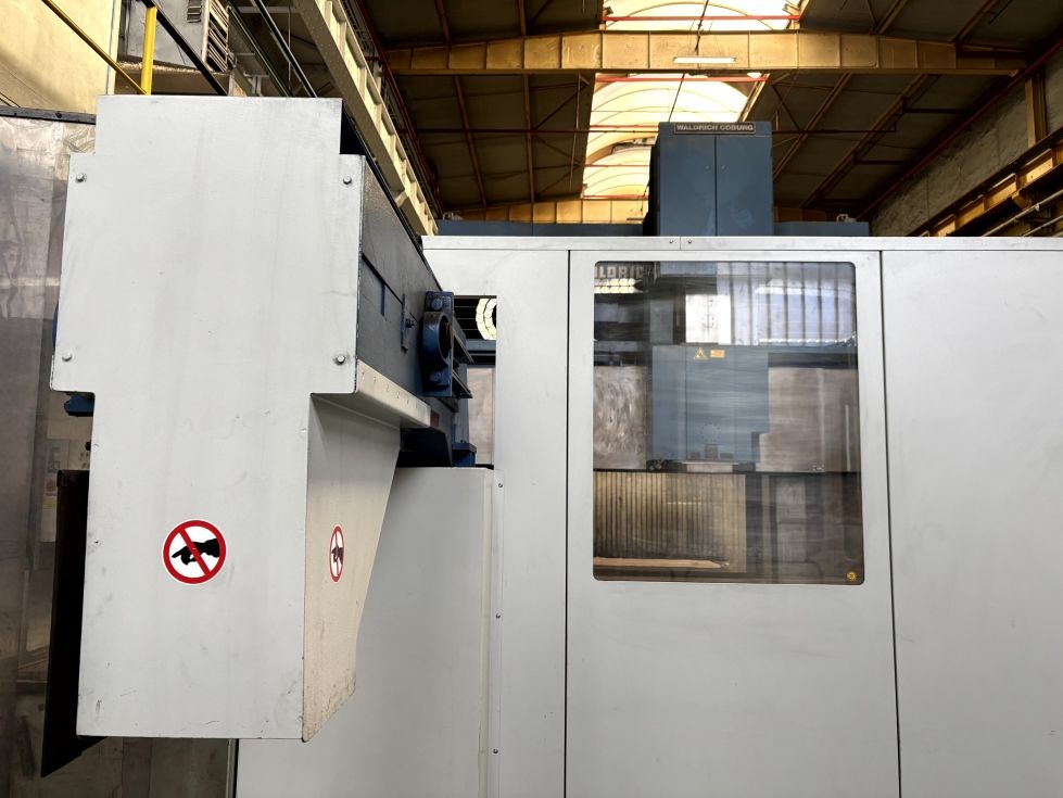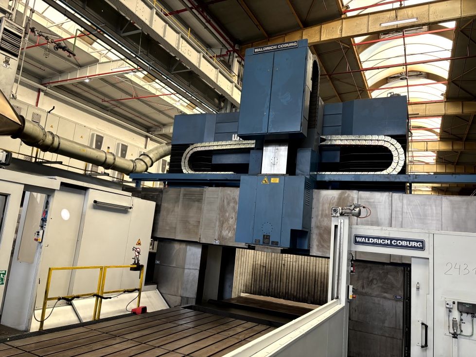 | Detalles | Fresadora de pórtico WALDRICH-COBURG 17 S - 10 FP 300 NC, completamente reacondicionada, con un diseño de pórtico estable y una capacidad de carga de mesa de 100 toneladas, ideal para trabajos exigentes en construcción de moldes y matrices. Número de serie y control