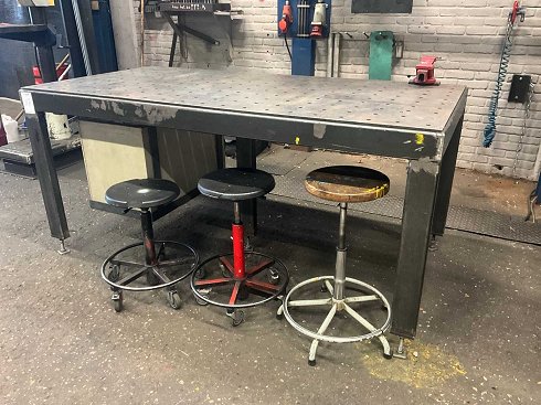 Incluye 3 taburetes, cajonera y tornillo de banco.