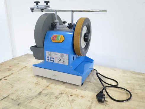 Afilador de cuchillos con Muela abrasiva 250 x 50 x 12 mm, Gritt 220 Disco de cuero 200 x 30 x 12 mm Diámetro de la muela abrasiva 250 mm Tensión de conexión 230 V Piedra de afilar Speed 90 rpm Peso de la máquina aprox. 18 kg Dimensiones L x W x H 470 x 300 x 440 m Condición: nunca usado / nuevo (5) |