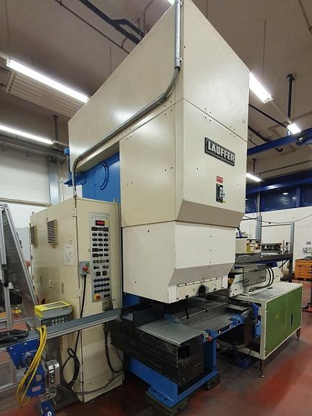 | Detalles | CONTROLS Control electrónico SIEMENS S5 TIPO DE PRENSA Sistema de accionamiento: Hidráulico Tipo de bastidor: Forma "C", único Paso entre montantes lateral (paso banda): Sí Cojines inferiores: Sí Agujero mesa: Sí FUERZA Fuerza total: 100 to MESA INFERIOR Anchura de la superficie de sujeción: 710 mm Profundidad de la superficie de sujeción: 560 mm CARRO Fuerza carro max.: 100 to Anchura de la superficie de sujeción: 560 mm Profundidad de la superficie de sujeción: 450 mm Agujero porta matrices: 50 mm Carrera: 320 mm Grosor de superficie de sujeción: 150 mm CARRO Velocidad de aproximación: 340 mm/s Velocidad de trabajo máx.: 32 mm/s Velocidad de retroceso máx.: 330 mm/s EXPULSOR SUPERIOR Carrera: 40 mm COJINES INFERIORES Carrera: 80 mm DIMENSIONES DE TRABAJO Altura de cierre (carrera máx. y regulación arriba): 455 mm ALIMENTADOR Tipo de alimentador: Rodillos Ancho de banda máx.: 300 mm Espesor max.: 20 mm Velocidad máx.: 120 m/min DATOS DE CONEXIÓN ELÉCTRICOS Tensión de conexión: 400 V Frecuencia de la red: 50 Hz DIMENSIONES / PESO espacio requerido -delante/atrás-: 2100 mm Altura total: 3200 mm Peso total aprox.: 8500 kg ACCESORIOS/ANEXOS (PRENSAS) Devanadora: Opcional Enderezador: Opcional Alimentador: Sí Mando bimanual: Sí Equipment: - Cutting impact dampening - Hydraulic die cushion and ejector - CNC - gripper feed (200x900x1700) - Soprem belt system (optional) see article no. 3-49541 |