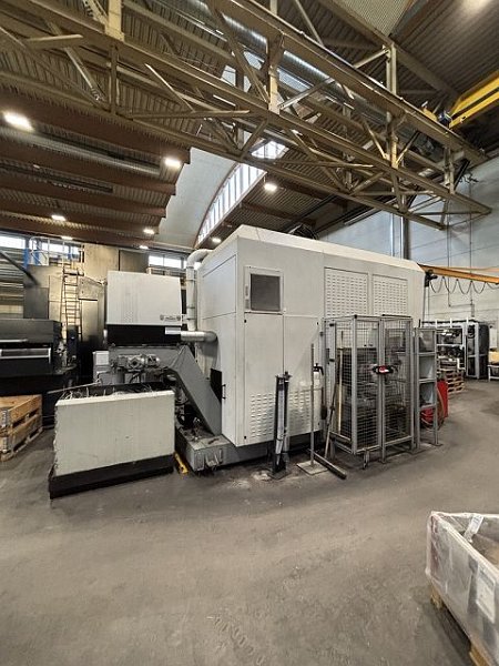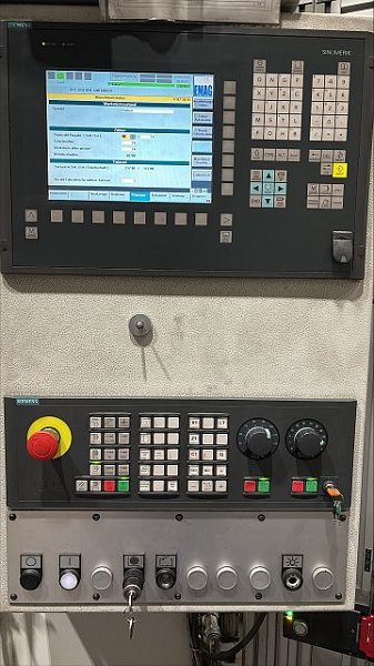 | Detalles | CONTROLS Control CNC SIEMENS 840 D FUNCIONES BÁSICAS design principle: vertical spindle Número de cabezales: 1 number of x/z slides: 1 Número de torretas: 1 live positions: Sí number of c-axes: 1 ZONA DE TRABAJO Diámetro de torneado (máx.): 530 mm Longitud de la pieza máx.: 200 mm MAIN SPINDLE Gama de velocidades a: 4000 /min Eje c: Sí X/Z SLIDE Portaherramientas: Turret number of tool positions (total): 12 - rotation speeds (max): 8000 /min DATOS DE CONEXIÓN ELÉCTRICOS Consumo de energía eléctrica (total): 71 kW Tensión de conexión: 400 V Frecuencia de la red: 50 Hz DIMENSIONES / PESO espacio requerido -izquierdo/derecha-: 9500 mm espacio requerido -delante/atrás-: 5000 mm Altura total: 4200 mm Peso total aprox.: 13500 kg - Axes: X / Z / C spindle / A turret / including life tool - The machine features a VDI 50 turret with 12 positions. - Feed roller conveyor with pickup station - 20 bar internal cooling |
