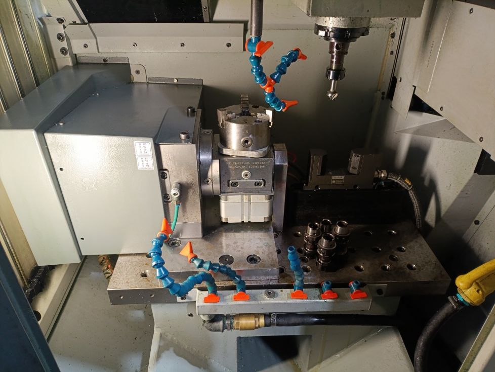 | Detalles | Centro de Mecanizado Vertical de 5 ejes y alta velocidad marca: “CHIRON” ● Modelo: FZ08S, Año: 2000 ● Control CNC Fanuc 18iM 5 Ejes (3+2) ● Palpador láser de herramienta ● Almacén con 24 herramientas ● Equipo de refrigeración ● Mesa de trabajo: 620 x 270 mm ● Sistema de amarre actual: plato universal ● Recorridos XYZ: 300 x 250 x 252 mm ● Recorridos "A": 360º / "B" 112 ● Distancia mesa-husillo: 170-420 mm ● Husillo: HSK-A32 / 15.000 RPM / 7,4 KW / 23 Nm ● Avance rápido X/Y/Z: 40/40/60 m/min ● Almacén 24 herramientas, tiempo de cambio: 0,5 / 1,5 seg. |