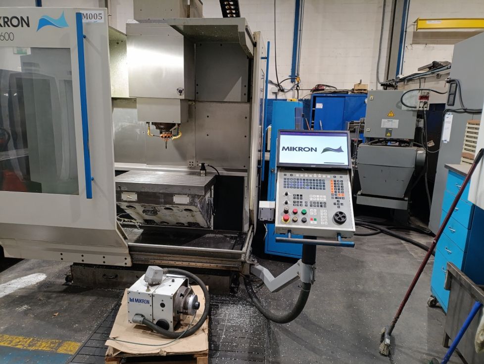 | Detalles | Centro de Mecanizado Vertical de alta velocidad con 4º eje marca “MIKRON” ● Modelo: VCP-600 HS Año: 2001 ● Control CNC Heidenhain TNC 430M, 4 ejes ● Mando remoto ● Husilo a 42.000 RPM ● Medidor Reni¡shaw para pieza y herramienta ● Grupo de refrigeracion del cabezal ● 4º Eje Divisor horizontal "Mikron" Altura puntos:150 mm, Plataforma: 200 mm ● Almacén con 40 herramientas ● Equipo de refrigeración ● Dimensiones de la mesa: 850 x 530 mm ● Peso sobre la mesa: 400 Kgs ● Recorridos X-Y-Z: 600 x 450 x 450 mm ● Electromandrino Step-Tec HSK-32 a 42.000 RPM ● Avances de corte: 15.000 mm/min ● Avance rápido XYZ: 22 m/min |