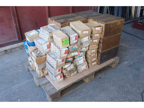 Muchos tornillos. Tornillos Imbus M12x75 & M5x50 con resistencia 8.8 en 9 cajas de madera. Tornillos (DIN 912 y DIN 933) galvanizados métricos con resistencia 8,8 - tamaños de M8 a M24. Pernos UNC con resistencia 12.9. El peso total (palet + pernos) es de 630 kg |