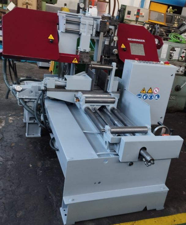 velocidad variable capacidad de corte en redondo: 260 mm. capacidad de corte en cuadrado: 260 mm potencia del motor: 4 Cv. tensión: 380 V. equipada con: alimentador de barras avance de corte regulable presión de corte regulable dispositivo de tensado de la cinta paro automático si se rompe la cinta mordazas hidráulicas doble mordaza para piezas cortas dispositivo auto-centrante para barras torcidas posibilidad de corte en paquete cuenta cortes alimentación de 0 a 500 mm. en un ciclo y de 500 a 4.500 en 9 ciclos recogedor de virutas |
