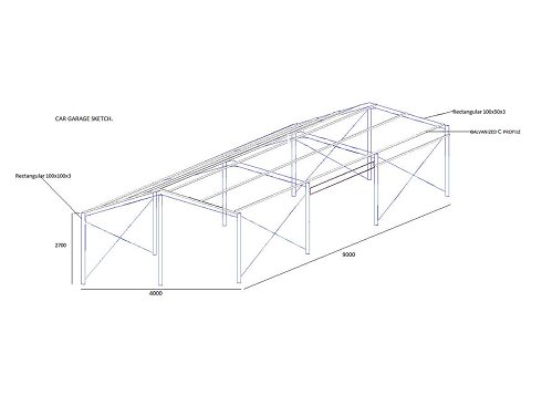 - 4 cerchas hechas de tubo rectangular 100 × 50 × 3 mm