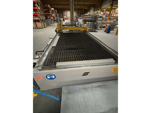 A la venta se encuentra una robusta máquina de corte por plasma ESAB E-VENT 2000, fabricada en 2006, de ESAB Cutting Systems GmbH, un reconocido fabricante de sistemas de separación térmica.