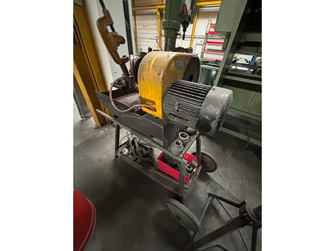 A la venta es una robusta y probada máquina de roscado REMS Tornado, diseñada como un dispositivo móvil independiente para uso fijo o flexible en talleres. La máquina es ideal para cortar roscas de tubería en tubos de acero y otros materiales, tanto cilíndricos como cónicos, dependiendo de la cabeza de corte. La máquina está equipada con un potente motor eléctrico y un dispositivo clásico de sujeción de mandíbula. El REMS Tornado se considera una solución estándar en calefacción y construcción de plantas, así como para la instalación de tuberías en la industria y el comercio. Datos clave técnicos: Modelo: REMS Tornado Función: Raspeado para tuberías de acero/gas/fontanería Funcionamiento: Motor eléctrico (alta corriente) Portaherramientas: Cabezas intercambiables (varios tamaños) Dispositivo de tensión de tubería con funcionamiento de palanca Estado: usado, listo para usar, con culata de herramientas (sin garantía de completitud) Equipamiento: Chasis con compartimentos de