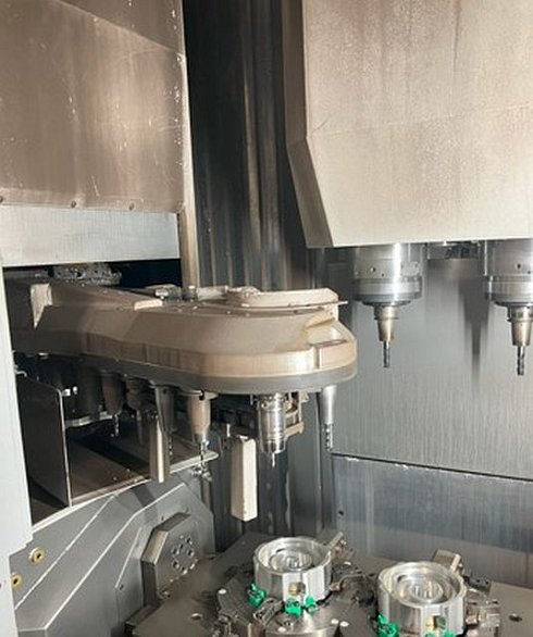 | Detalles | CONTROLS Control CNC SIEMENS 840D SL 4.8 ZONA DE TRABAJO -CÚBICA- número de ejes de procesamiento (sin ejes paralelos): 4 Trayecto de desplazamiento eje X: 210 mm Trayecto de desplazamiento eje Y: 270 mm Trayecto de desplazamiento Z: 360 mm HUSILLO / CABEZAL Gama de velocidades a: 40000 /min Tomaherramientas: HSK A40 ALMACÉN DE HERRAMIENTAS Número de posiciones de la herramienta: 72 AUTOMATIC WORKLOAD EQUIPMENT workpiece manipulator: articulated robot Número de posiciones el almacenador: 36 DATOS DE CONEXIÓN ELÉCTRICOS Tensión de conexión: 400 V Frecuencia de la red: 50 Hz DIMENSIONES / PESO espacio requerido -izquierdo/derecha-: 8500 mm espacio requerido -delante/atrás-: 2500 mm Peso total aprox.: 6000 kg EQUIPO ADICIONAL Lubricación central: Sí Transportador de virutas: Sí Unidad de refrigerante: Sí Sistema refrigeración interior: Sí Certificado CE: Sí -Siemens tool management with retooling -Fanuc Automation Robot M-10IA -Operating hours: 7,200 h - of which spindle 1 original, spindle 2: 3896 h |