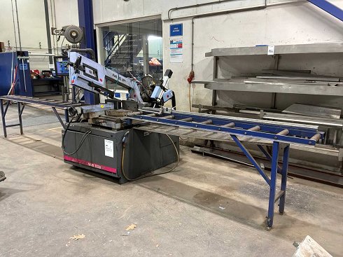 Parada manual. 3 x hoja de sierra. Dimensiones: transportador de rodillos de alimentación: 3000x400x870mm, transportador de rodillos de descarga: 2260x400x950mm. |