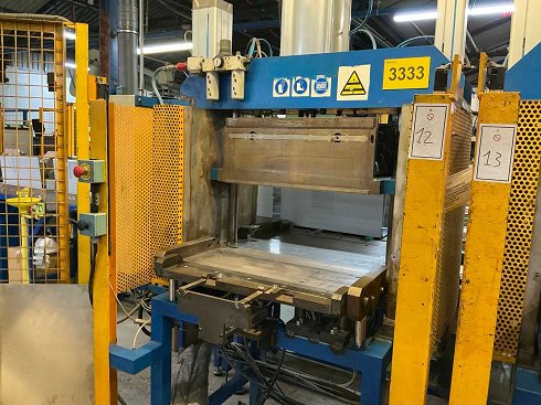Tipo: Máquina de doblar neumática con viga superior de movimiento vertical y mesa inferior plana.