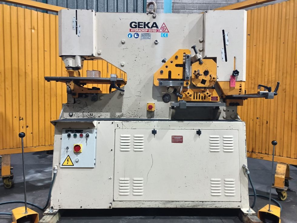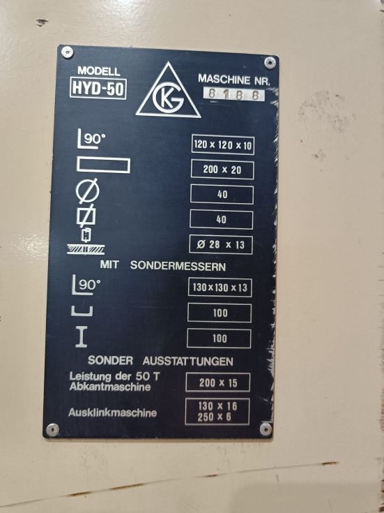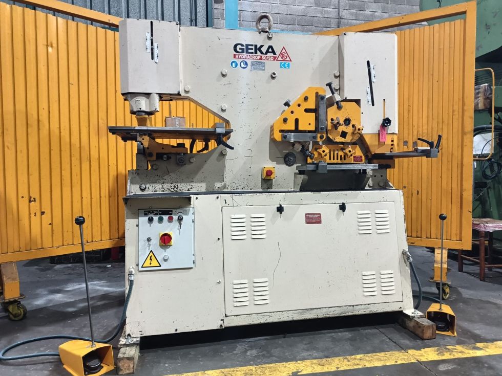| Detalles | CIZALLA UNIVERSAL Marca: GEKA-Hydracrop-50 SD. Motor: 7,5 Hp. Capacidad: Punzonado Ø40 x 10 mm ó Ø20 x 20 mm L de 120 x 120 x 10mm, Ø40 pletina 200 x 15mm. Año Fabricación: años 90 aprox. Pais Origen: ESPAÑA. Control: Convencional. Accesorios: con escote de 500 mm, en mesa de punzonado, tope electrico de 1 m de longitud, topes en mesa de punzonado y escantonado, con sello CE. 2 cilindros y 2 pedales de accionamiento. Dimensiones: 2 x 0,8 x 1,9 m. Peso1460 Kg. USADA. |