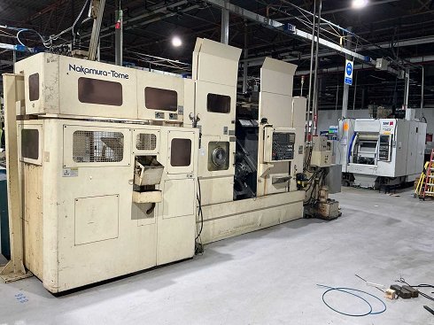 CNC Nakamura-Tome WT-250 Tipo: Torno de doble husillo y doble torreta. Fabricante: Nakamura-Tome Precision Industry Co., Ltd., Japón. Modelo: WT-250. Año de fabricación: 2001. Diámetro máximo de torneado: 250 mm. Longitud máxima de torneado: 555 mm. Capacidad de barra: hasta 65 mm. Velocidad máxima del husillo: 4.500 rpm. Potencia del husillo: 18,5 kW. Control CNC: Fanuc Series 18i-T. Accesorios visibles: doble torreta, transportador Mosnic Corporation y bomba Knoll. Funcionalidad no comprobada.