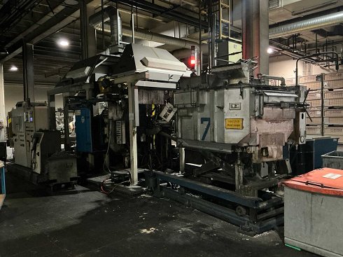 compuesto por el horno de fusión Striko West con horno W 65 SL, construido en 1997, número de serie 55288, máquina de fundición OMS, robot pulverizador Fanuc, incluyendo control robotizado, robot de retirada de piezas Kuka KR 15-2 fabricado en 1999, incluyendo control de robot, cinta transportadora de piezas, prensa de corte Weko WE C 12, fabricada en 2006, número de serie: 404 |