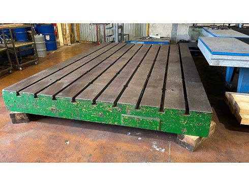 Notas: Mesa de ranura en T adecuada para sujetar, inspeccionar o montar herramientas. Estructura de hierro fundido resistente en buen estado general. |
