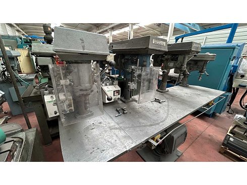 MTM de Fabricante de Milacron / Chomienne de Cincinnati – Villefranche-sur-Saône, Francia Modelo Número de unidades: 4 taladros independientes montados sobre una mesa común Bancoperforación tipo multihusillo accionado por correa Capacidad de perforaciónde 10 a 17 mm Velocidad de rotaciónDe 330 a 12.000 rpm dependiendo de la unidad Alimentación380 V – 50 Hz Equipo visible4 taladros Milacron / Chomienne de Cincinnati con protectores transparentes, controles individuales, caja eléctrica Schneider, distribución trifásica integrada Estructura de mesa de aceroque sostiene 4 cabezas de perforación, montadas sobre bases fijas con ajustes mecánicos Dimensiones aproximadas (mm) 2500 × 900 × 1700 Peso estimadoaprox. 1000 kg Condición visualBuen estado general, conjunto completo y funcional, protecciones y cableado instalados |