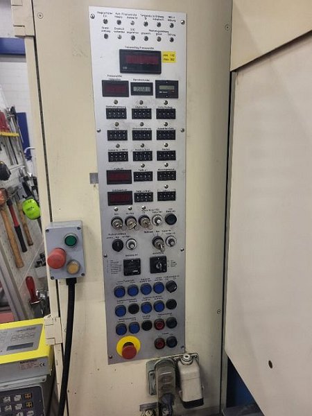 | Detalles | TIPO DE PRENSA Sistema de accionamiento: Hidráulico Tipo de bastidor: Forma "C", único Cojines inferiores: Sí Agujero mesa: Sí FUERZA Fuerza total: 100 to MESA INFERIOR Anchura de la superficie de sujeción: 710 mm Profundidad de la superficie de sujeción: 560 mm CARRO Fuerza carro max.: 100 to Anchura de la superficie de sujeción: 560 mm Profundidad de la superficie de sujeción: 450 mm Agujero porta matrices: 50 mm Carrera: 320 mm Grosor de superficie de sujeción: 150 mm CARRO Velocidad de aproximación: 340 mm/s Velocidad de trabajo máx.: 32 mm/s Velocidad de retroceso máx.: 330 mm/s EXPULSOR SUPERIOR Fuerza nominal: 2 to Carrera: 40 mm COJINES INFERIORES Fuerza cojines máx.: 10 to Carrera: 80 mm DIMENSIONES DE TRABAJO Altura de cierre (carrera máx. y regulación arriba): 455 mm ALIMENTADOR Tipo de alimentador: Rodillos Ancho de banda máx.: 300 mm Espesor max.: 20 mm Velocidad máx.: 120 m/min DATOS DE CONEXIÓN ELÉCTRICOS Tensión de conexión: 400 V Frecuencia de la red: 50 Hz DIMENSIONES / PESO espacio requerido -delante/atrás-: 2100 mm Altura total: 3200 mm Peso total aprox.: 8500 kg ACCESORIOS/ANEXOS (PRENSAS) Devanadora: Opcional Enderezador: Opcional Alimentador: Sí Mando bimanual: Sí Equipment: - Cutting impact dampening - Hydraulic die cushion and ejector - CNC - gripper feed (200x900x1700) - Last inspection report from 2021 - 2 manual release - Soprem belt system (optional) see article no. 3-49541 |