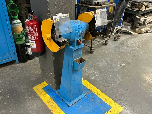 - Amoladora doble SUPER LEMA: dimensiones aprox. 660 × 410 × 1150 mm, diámetro máximo de la muela aprox. 250 mm.