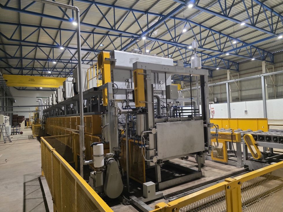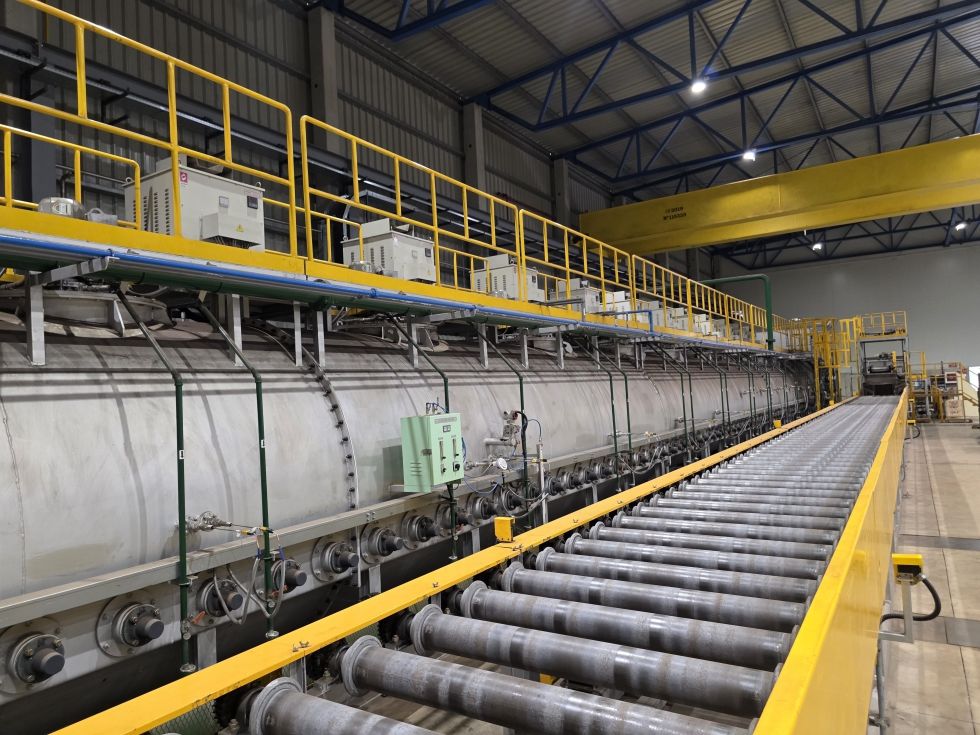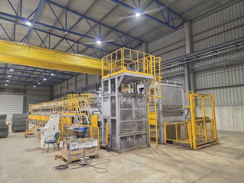 Venta y fotos adicionales en netbid.com Enlace: https://www.netbid.com/es/ofertas/30720964-30720909-shinjin-furnace-ht-sphan-co-baro-horno-de-recocido-esferoidizado Descripción: Horno de recocido esferoidizante para productos de forjado en frío. Método de arrastre: · Sistema de rodillos tipo hearth (Hearth Roller Type Driving System) · Temperaturas de trabajo: - Zona de calentamiento: Normal: 785 °C Máximo: 850 °C - Zona de enfriamiento lento: Normal: 720–680 °C Máximo: 750 °C · Capacidad de tratamiento: 1,538 cestas por hora (~1,250 kg/h) 39 minutos por cesta Peso bruto por cesta: 1,380 kg · Potencia: Calefacción: 3Ph × 400V × 50Hz Control: 3Ph × 220V × 50Hz · Tamaño efectivo: 32400 x 1400 x 505 mm · Control de temperatura: Sistema S.C.R. P.I.D. · Diferencia de temperatura permitida: Calentamiento: 785 °C ±5 °C Enfriamiento lento: 720 °C ±5 °C · Dimensiones de la cesta: 1250 × 1250 × 400 mm 13 Zonas de tratamiento térmico: · Zonas de calentamiento/mantenimiento: 5 zonas (1Z–5Z) · Zonas de enfriamiento: 2 zonas (6Z, 7Z) · Zonas de enfriamiento lento: 6 zonas (8Z–13Z) Duraciones del proceso: · Calentamiento / Mantenimiento: 344 minutos · Enfriamiento: 60 minutos · Enfriamiento lento: 400 minutos · Enfriamiento rápido (a menos de 200 °C): 39 minutos · Tiempo total del ciclo: 870 minutos Normativa CE Dimensiones aproximadas: 50.000 x 7.500 x 4.650 mm |