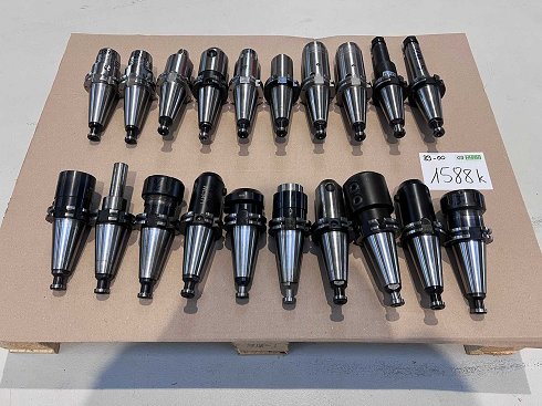 20 portaherramientas SK40 Fabricantes HPT. Cáliz y aval Interfaz principalmente Hydrodehn, Collet y Weldon Incluyendo el tornillo de apriete Dimensiones de transporte: 800 x 600 x 400 mm, aprox. 50 kg |