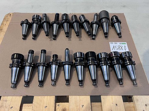 20 portaherramientas SK40 Fabricantes HPT. Cáliz y aval Interfaz principalmente Weldon & Collet Incluyendo el tornillo de apriete Dimensiones de transporte: 800 x 600 x 400 mm, aprox. 50 kg