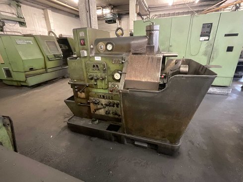 Datos técnicos Fabricante: MONFORTS Werkzeugmaschinenfabrik A.G., Mönchengladbach Tipo: KA 200 Tipo de máquina: Torno hidráulico de torreta Tipo: Torno de torreta controlado por mecánica-hidráulica Potencia: 7,4 kW (eje principal), 5,5 kW (hidráulico) Velocidad: 40–290 / 240–1730 rpm Diámetro de torneado: 250 mm Longitud de giro: 150 mm Diámetro del husillo en el cojinete delantero: aprox. 118 mm Dimensiones (L×A× A): aprox. 2286 × 1600 × 1787 mm Peso: aprox. 3900 kg Configuración Torreta: 4 soportes Ø 60 mm, 0,4 min de tiempo de conmutación Alimentación de la torreta: 6–285 mm/min variable infinitamente Deslizamiento de la cara de alimentación: 6–125 mm/min variable infinitamente Desplazamiento frontal: 115 mm, giro rápido 100 mm Otras características: Torreta múltiple, control hidráulico, cama de hierro fundido, área de trabajo cerrada, bandeja de virutas y refrigerante Existe un servicio de carga de hasta 3000 kg. Para todos los demás lotes de más de 3000 kg,