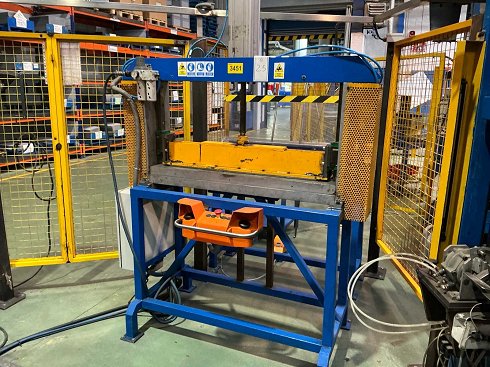 Prensa neumática (2011) Prensa hidráulica protegida con eje de acción horizontal y consola separada para la carga y descarga manual. Distancia entre columnas: aproximadamente 1.000 mm. Dimensiones totales aproximadas (L × O × H): 1.600 × 1.500 × 2.100 mm. Funcionalidad no probada. Este artículo se entrega cargado en camión. Los costes de desmantelamiento y carga se especifican como costes adicionales.