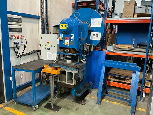 AMBOLD 2 384 E prensa excéntrica Prensa excéntrica mecánica con protección y consola de control Dimensiones totales aproximadas (L × Ao × H): 1.800 × 1.800 × 2.300 mm. Tamaño aproximado de la mesa: 750 × 500 mm. Funcionalidad no probada. Este artículo se entrega cargado en camión. Los costes de desmantelamiento y carga se especifican como costes adicionales.