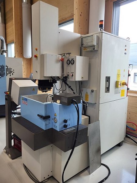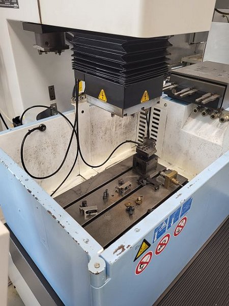 | Detalles | CONTROLS Control CNC ZONA DE TRABAJO -CÚBICA- Trayecto de desplazamiento eje X: 250 mm Trayecto de desplazamiento eje Y: 160 mm Trayecto de desplazamiento Z: 250 mm ESPECIFICACIONES TÉCNICAS Table-size : 480 mm Table-size : 330 mm Adjustment of x-axis: 250 mm Adjustment of y-axis: 160 mm DATOS DE CONEXIÓN ELÉCTRICOS Tensión de conexión: 400 V Frecuencia de la red: 50 Hz DIMENSIONES / PESO espacio requerido -izquierdo/derecha-: 1200 mm espacio requerido -delante/atrás-: 1200 mm Altura total: 2500 mm Peso total aprox.: 1000 kg Equipment: -Agietron Compact 1 30A/C-axis / DAI 1-P -AGIE Fuzzytron -14" color screen -Fire extinguishing system -3-compartment electrode magazine -Micro-machining variant -lots of accessories |