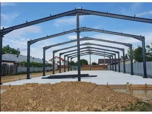 Año de construcción 2026 Material Construcción en acero Superficie total 450 m² Dimensión total L 15000 mm Dimensión total Altura 4500 mm Dimensión total L 30000 mm Información adicional Construcción en acero; Altura de la cresta 6500 mm; Año de construcción 2026; Información adicional Pendiente del tejado: 20 grados; Pintado RAI 5023; La estructura consta de 2 vigas (cerchas de cercha) en los extremos que están hechas de perfil IPE 160, 5 vigas intermedias (cerchas) del perfil IPE 220, 4 columnas en los extremos del perfil IPE 160 y 10 columnas intermedias del perfil IPE 220. 4 columnas de puerta de tubería cuadrada 100x100x4, 6 puntales de presión de tubería 76x4, tira de viento para vigas y columnas de acero galvanizado con tensor de 16mm, toda la estructura está sobre tornillos (desmontable) Estado: sin uso; Toda la estructura incluye un certificado de conformidad para materiales, un SKETCH de construcción y un plano de cimentación. Aprovechándose. |