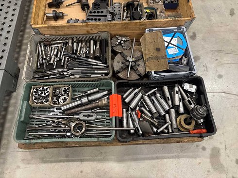 - Mangas reductoras - Dos mandrillas de cuatro mandíbulas - Diversas herramientas de roscado - Caja con muelas de rectificado