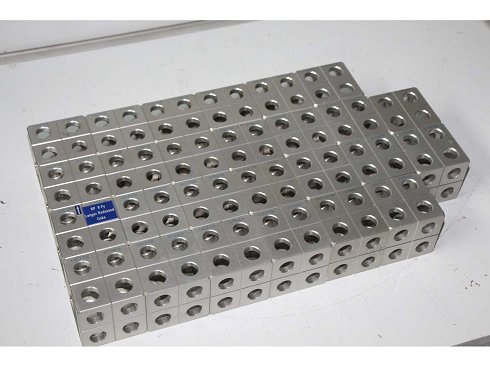 El objeto se proporciona hasta el umbral de carga. El embalaje y la carga no están incluidos en el precio. La ayuda con la carga es posible dependiendo del peso y de los requisitos de carretilla elevadora. Luz AF50 Cuboides de doble fila, 100x100 Paso (A) 50, diámetro ø 25mm