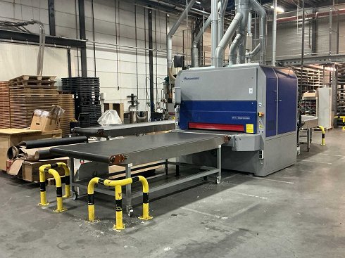 Equipado con cinta móvil de alimentación de costura 2016 de 300 cm, ancho de banda: 135 cm, sistema de transporte móvil de costura de 3 piezas con curvatura. Cinta transportadora de costura recta: 485x80cm, cadena de costura curva del transportador 80cm, ancho total 388cm, banda de alineación 135x100cm. Hay cintas y cepillos extra disponibles. Motores en palet y piezas en caja |