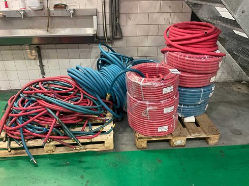 Manguera EPDM Compuesto por 20 barras rojas y azules Varios rollos nuevos de 40 metros en distintos diámetros, incluyendo 12,7x22 mm y 19x27 mm Y se usa con acoplamientos |