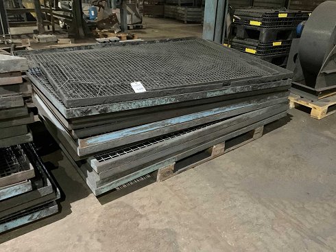 1 palé con vallado para máquinas para proteger las máquinas giratorias, tamaño aprox. 200x125 cm, en parte rejilla pequeña 25x25 mm y en parte rejilla grande 50x50 mm. |