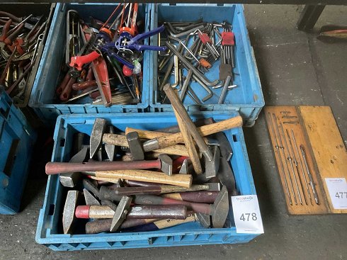 Se refiere a 3 cajas, incluyendo martillos, llaves Allen, pistolas de calafateo, cinceles, destornilladores, cajas incluidas |