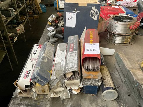 De varios tipos y tamaños de electrodos de soldadura, se han abierto algunas cajas |