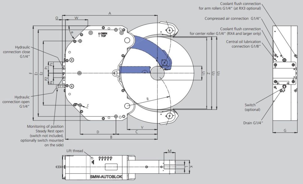 | Detalles | Metal cutting Tooling SMW AUTOBLOK - RX4-ZSW Premium Line self centering extra compact C type steady:Yes |