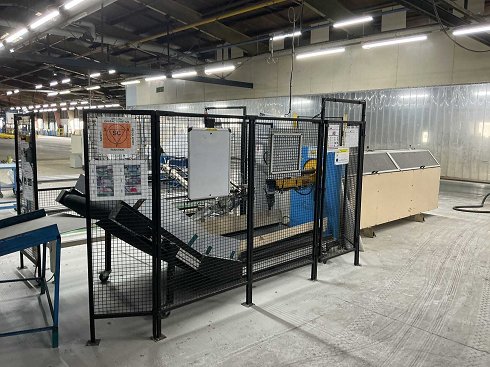 También incluye una cinta transportadora móvil (90 cm de ancho), una cinta transportadora de entrada con cales tubulares con 2 estaciones: recorrido a más de 2 m, un transformador ESO de 20 kva y una carcasa de malla |