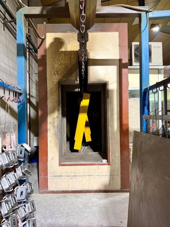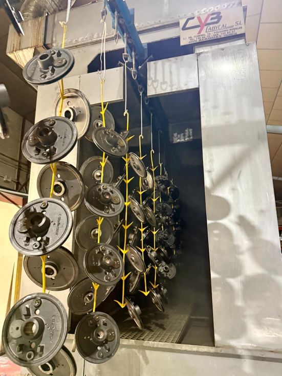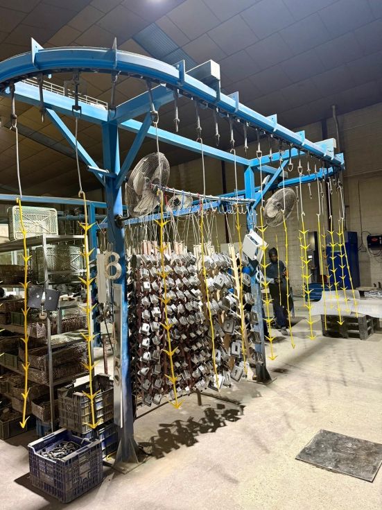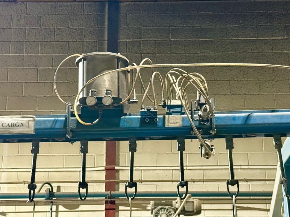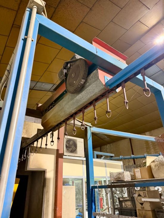 Se vende planta de pintura en polvo electrostática de ocasión, ideal para producción industrial, de fabricante Cabycal, ubicada en Zaragoza. Características principales: - Galibo de paso: 1750 x 1000 mm - Largo máximo de pieza: 3000 mm - Transportador aéreo continuo: 100 metros - Velocidad: 1,24 m/min - Carga máxima: 80 kg/m lineal - Capacidad estimada: 498 piezas - Separación entre colgadores: 200 mm Túnel de Tratamiento Superficial (TTS) - 3 etapas - Construido en acero inoxidable AISI 316 - Sistema químico con dosificación automática DNPI Sistema de pintura - Sistema completo GEMA - Cabina INOX con filtros cartucho antiestáticos + ciclón de recuperación - Central de polvo con tamiz - 6 pistolas automáticas + 2 manuales Horno lineal de polimerizado - Longitud: 24 m - Combustible: gas natural - Cámara de combustión de secado y polimerizado sustituidas hace 1 año - Quemadores Riello - Puertas de inspección y escotillas de limpieza Mantenimiento y accesibilidad - Engrase y lubricación de cadena accesible Video de la instalación completa: https://youtube.com/shorts/qPQQqX6As7E NO INCLUYE DESMONTAJE NI TRANSPORTE Opcional: Planta de depuración completa, en buen estado de funcionamiento: +15.000 EUR 📍 Ubicación: Zaragoza |